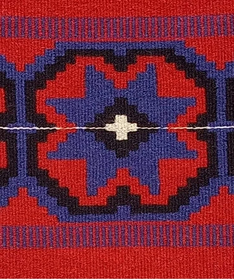 There was a big rug that I made in Norway with Tierra Wools warp and weft yarn that I bought at Shonto Trading post on the Navajo reservation. I used a combination of motifs in the traditional Rio Grande style with the Norwegian eight-petal rose in the center. I love the combining of cultures and styles to make something new in that piece. And my brother bought it so now I can look at it whenever I want!